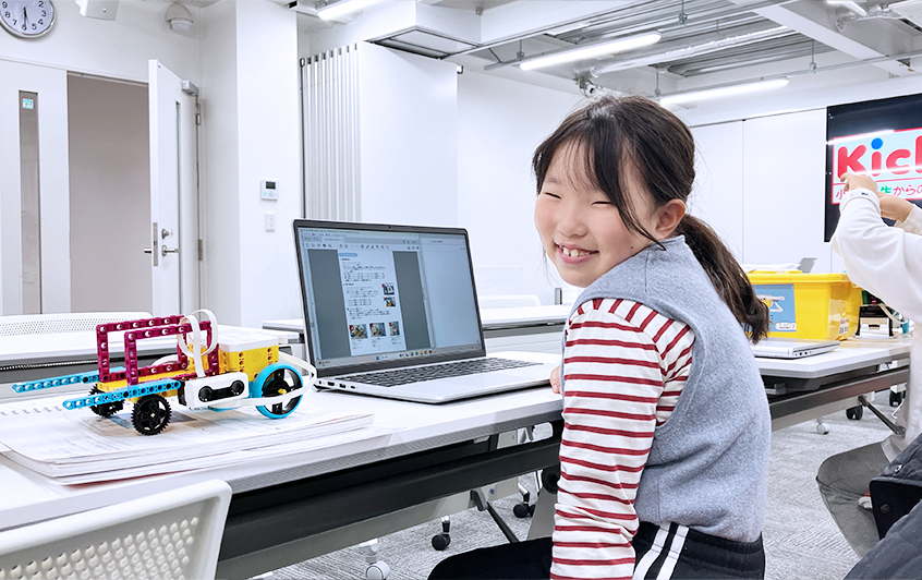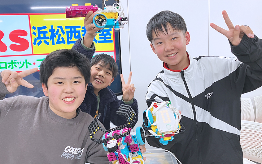 Kicks浜松西教室では、ロボット製作やプログラミングを通して、お子さま一人ひとりの興味やペースを大切にした学びを行っています。